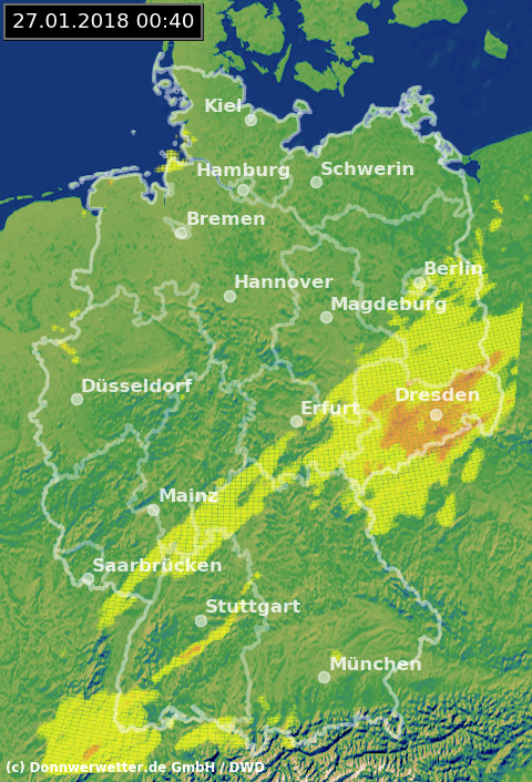 Radarbild von Samstag, 27.01.2018 um 00.40 Uhr