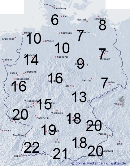 Durch Dauerregen und Sprühregen wird in großen Teilen Deutschlands eine Benetzung von 13 bis 22 Stunden erzielt. Lediglich in Schleswig-Holstein und im Nordosten bleibt es überwiegend trocken. Hier entsteht Benetzung durch Tau.