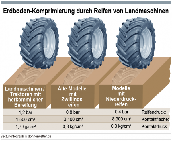 Die Art der Bereifung spielt bei der Erdboden-Komprimierung eine entscheidende Rolle, wie unsere Infografik zeigt:
