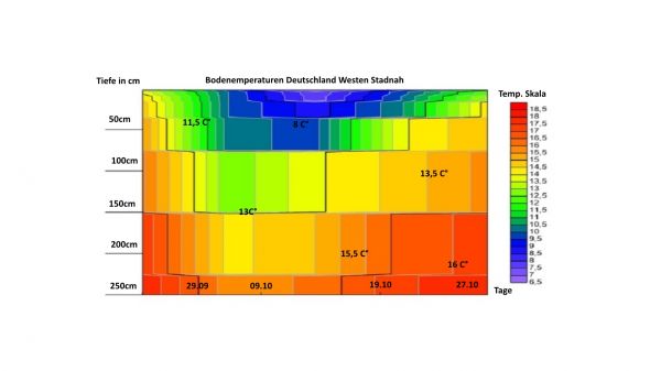 Bodentemperaturen vom 29.09.2015 bis zum 27.10.2015, für den Westen Deutschlands.