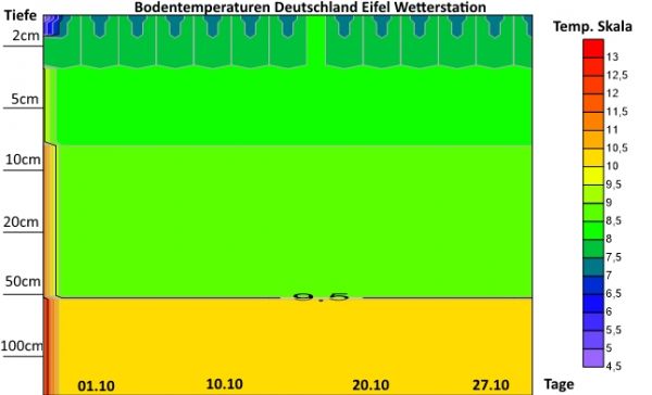 Bodentemperatruen vom 01.10.2015 bis zum 27.10.2015 für die Eifel.
