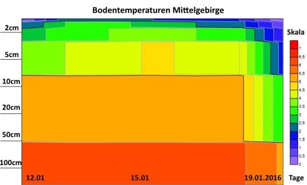 Bodentemperatruen vom 28.12.2015 bis zum 03.01.2016 für das Mittelgebirge.
