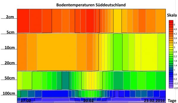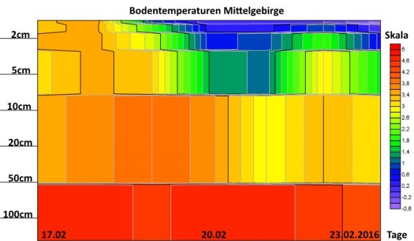Bodentemperatruen vom 17.02.2016 bis zum 23.02.2016 für das Mittelgebirge.