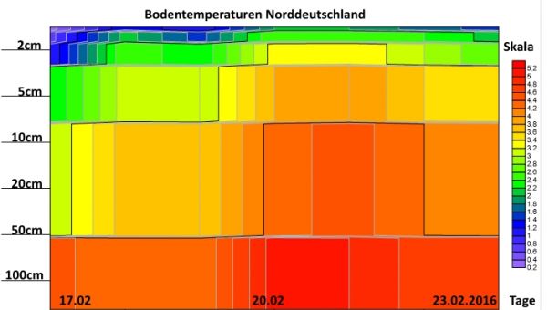 Bodentemperaturen vom 17.02.2016 bis zum 23.02.2016, für den Norden Deutschlands.