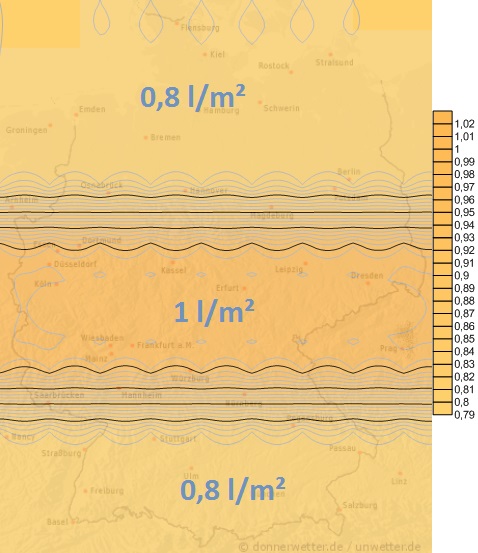 Am Samstag überquert uns mit lebhaftem Wind ein weiteres Regengebiet. Dabei können gebietsweise zwischen 10 und 20 Liter Niederschlag pro Quadratmeter fallen.