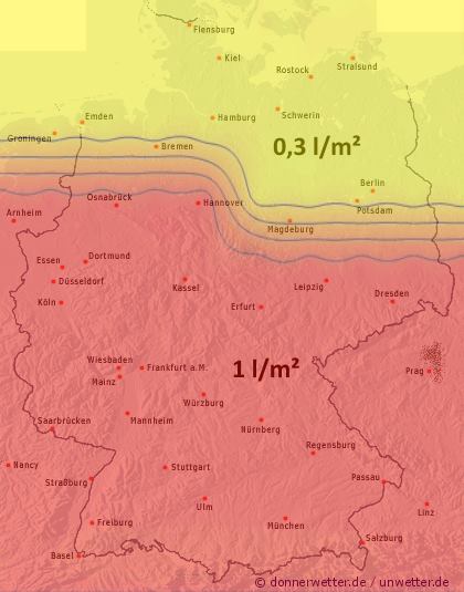 Deutschland ist nass geworden. Bis auf die Küste, gab es gestern Landregen zwischen dem Schwarzwald und Berlin. Besonders in den Mittelgebirgen gab es über 20 l/m2. Auch im Saarland war es mit 30 l/m2 sehr nass.