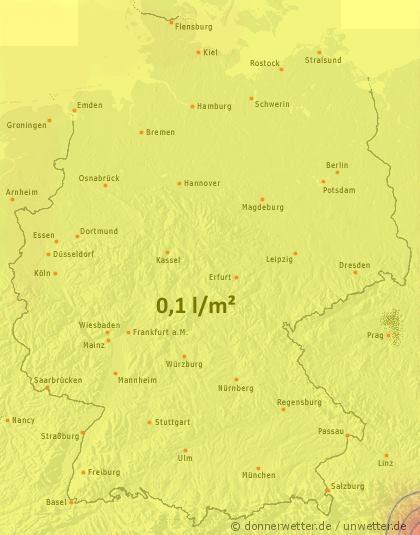 Im Süden sind im Augenblick nur schwache Echos zu sehen. Die Kaltfront wird sich aber im Luv der Alpen aktivieren und auch in Baden-Württemberg und Bayern Niederschläge auslösen. Unter Zufuhr kälterer Polarluft geht der Regen in Deutschland teilweise bis in tiefere Lagen in Schnee über.