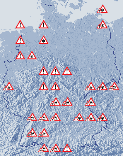 Aktuell melden die Wetterstationen an vielen STellen Glätte durch Schnee und Eis und auch nasse Straßen im Flachland. So hat es in NRW bis auf 200 m Höhe geschneit und auch Niedersachsen wird nasser Schnee gemeldet.
