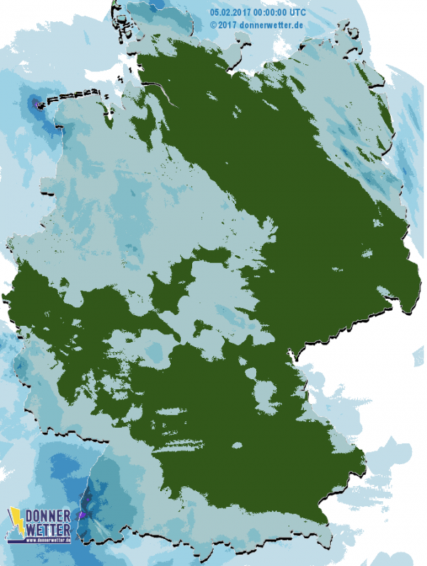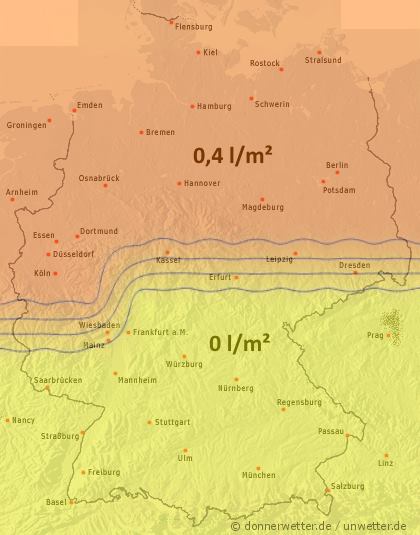 In Streifen gab es gestern etwas Regen in Deutschland, besonders an der Grenze zu Dänemark und an der Grenze zu Polen. Auch Niedersachsen war nass. In einem Streifen von Hamburg bis zum Erzgebirge blieb es trrocken, genauso in einem Streifen von NRW runter bis Bayern. Von Osten her fällt etwas Schnee.