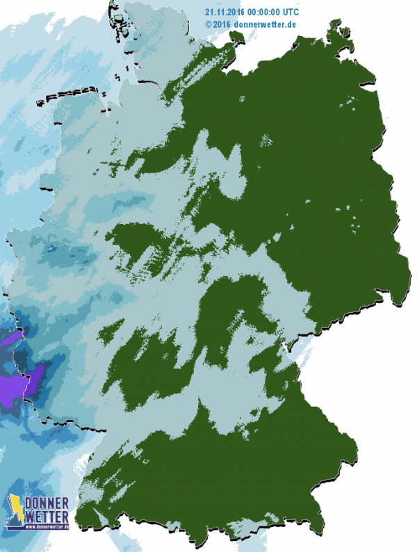Im Westen und Norden des Landes gab es gestern wenig Regen. Ost- und Süddeutschland blieben weitgehend trocken. Im Saarland und in Rheinland-Pfalz war es mit 30-40 l/m2 sehr nass. Besonders in Frankreich und Belgien regnet es heute wieder. In Deutschland wird es nur im Westen ein wenig nass.