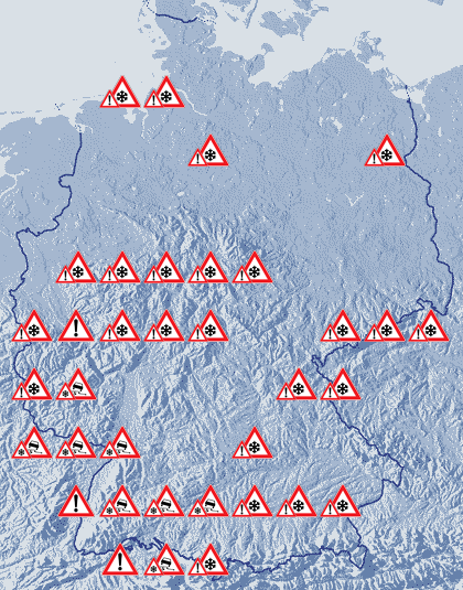 Aktuell zeigen die Straßenmeldungen verbreitet Glätte durch Schnee und Eis.