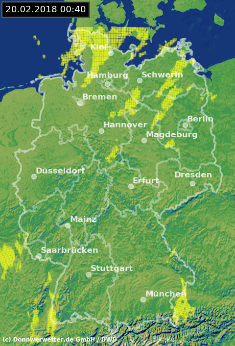 Heute und in den nächsten Tagen treten Niederschläge im Großteil unseres Landes nur selten auf. Lediglich im Südosten, sowie im Ostseeumfeld kann es gelegentlich etwas schneien. Die Mengen liegen jedoch meist unter 5 Liter pro Quadratmeter. Mit auffrischendem Nordostwind wird es von Tag zu Tag kälter.