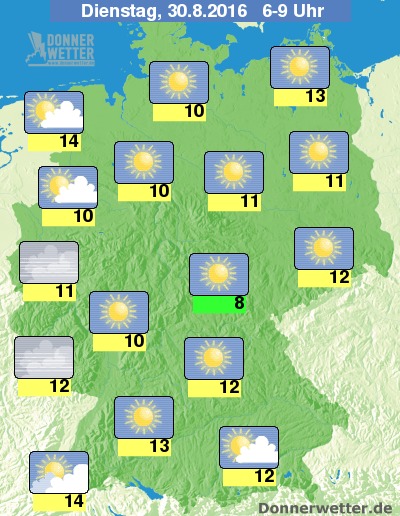 Dabei geht es vor allem in den Nacht- und frühen Morgenstunden, bevor die Höchsttemperaturen im weiteren Wochenverlauf wieder zulegen, erst mal deutlich frischer zu. So starten wir etwa am Dienstagmorgen verbreitet mit Temperaturen um 10 Grad C in den neuen Tag: