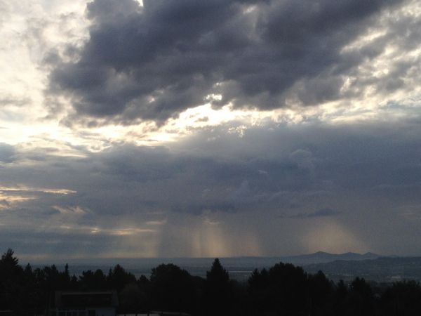 Kurze sonnige Phasen wechseln mit Regenphasen ab.