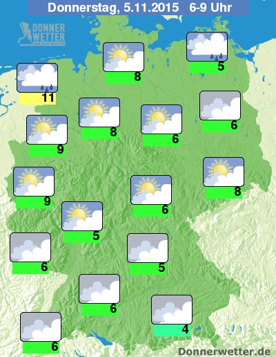 Das zeigt auch unsere aktuelle Wetterkarte von Donnerstagmorgen. Besonders weit klaffen die Temperaturdifferenzen in den Höhenlagen auseinander. So werden im Alpenvorland momentan Werte um 4 °C erreicht, bis zum Nachmittag werden sie auf den vierfachen Wert angestiegen sein: