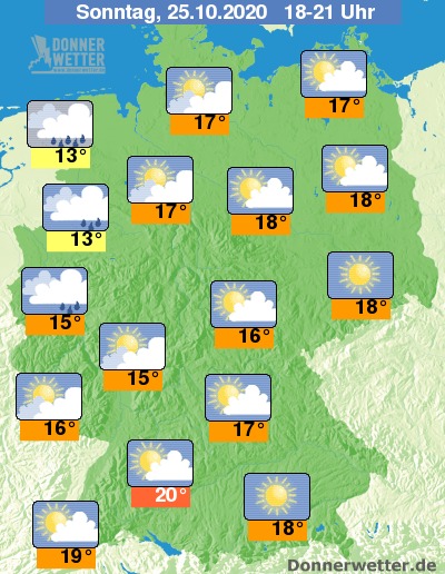 Heute Abend ist es über Sachsen und Bayern noch oft sonnig, sonst nimmt auch die Bewölkung im Norden und Westen weiter zu, Regen fällt in einem breiten Streifen von NRW bis nach Schleswig-Holstein. Östlich davon bleibt es noch meist trocken. Die Temperatur liegt bei kühlen 13 Grad an der Ems und bis zu 20 Grad in Stuttgart.
