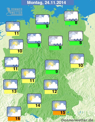 Der Start in die neue Arbeitswoche beginnt für viele von uns deutlich weniger freundlich als das Ende der vorherigen Woche. Grund dafür ist ein Tiefausläufer der im Tagesverlauf vor allem über den Norden, aber auch über Großteile der Mitte Deutschlands hinwegzieht. Dabei fällt zeitweise Regen, weiter nach Süden ist es dagegen überwiegend locker oder aufgelockert bewölkt und hier bliebt es bis zum Abend voraussichtlich trocken. Die Temperatur steigt auf 8 Grad an der Ostsee und bis auf milde 16 Grad in Freiburg.