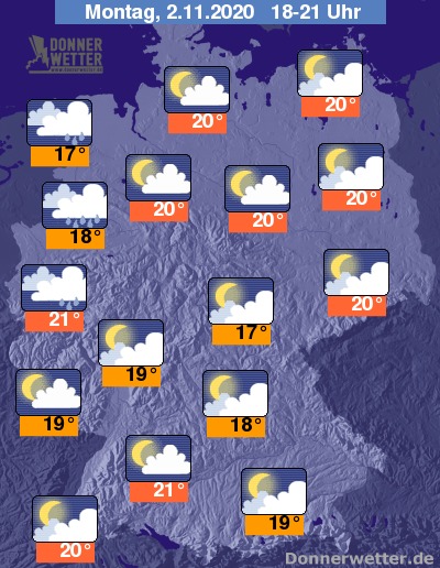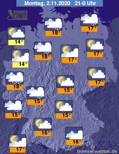 In den Abendstunden dominiert über weiten Landesteilen zunächst ein meist noch trockener Mix aus lockerer oder aufgelockerter Bewölkung. Von Westen nimmt die Bewölkung am Abend zu und es regnet zeitweise. In den späteren Abendstunden weiten sich die Schauer dann landeinwärts aus, so dass es auch zwischen Teutoburger Wald und Nordmecklenburg regional nass werden kann.