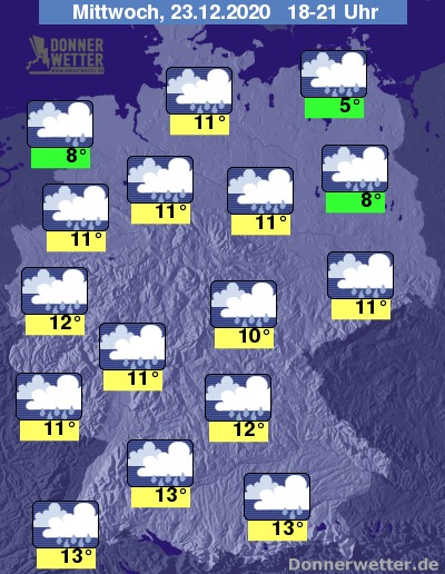Die Temperaturen liegen meist im zweistelligen Bereich zwischen 10 und 13 Grad, nur an den Küsten, sowie in Teilen Brandenburgs bleibt es mit 5 bis 9 Grad etwas kühler.