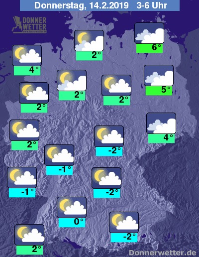 Der Donnerstag startet im Norden und Osten überwiegend bedeckt oder aufgelockert bewölkt. In der Südwesthälfte zeigt sich der Himmel in den Frühstunden teils heiter, teils locker bewölkt. Schauer sind am Morgen nicht zu erwarten.