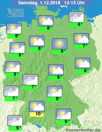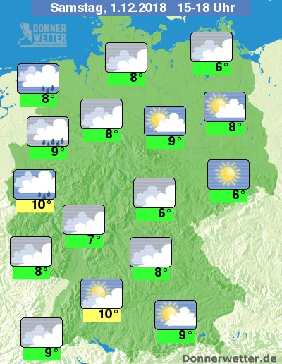 Im weiteren Nachmittagsverlauf nimmt die Bewölkung über weiten Landesteilen zu, weitgehend freundlich bleibt es noch entlang der Oder sowie an der Donau. Am Mittel- und Niederrhein sind Schauer zu erwarten, sonst bleibt es meist trocken