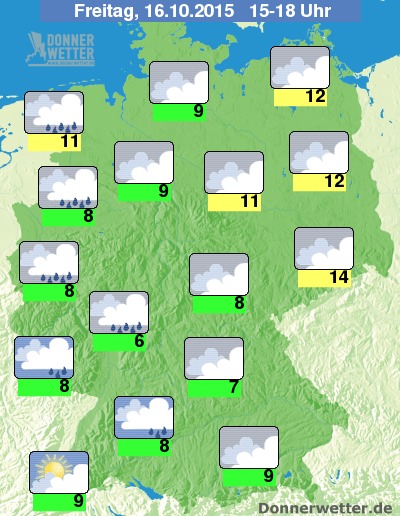 Heute Nachmittag halten sich verbreitet dichte Wolken, im Breisgau kann die Bewölkung auch häufiger auflockern, sonst sind die Chancen für Sonne meist sehr gering. Zudem fällt vor allem in den westlichen Landesteilen zeitweise Regen, aber auch weiter östlich kann hier und da etwas Regen oder Nieselregen dabei sein. Die Temperatur steigt auf nasskalte 6 Grad am Westerwald und bis auf 14 Grad an der Neiße.