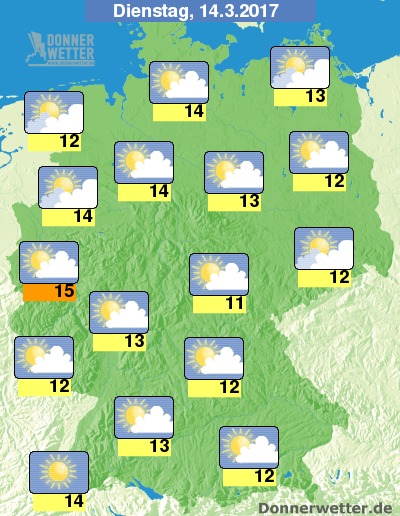 Am Dienstag ist es überwiegend heiter, vor allem im Süden auch häufiger sonnig. Nach Norden hin können auch mal einige Wolken durchziehen, dazu bleibt es trocken. Die Temperatur erreicht noch mildere 11 bis 15 Grad.