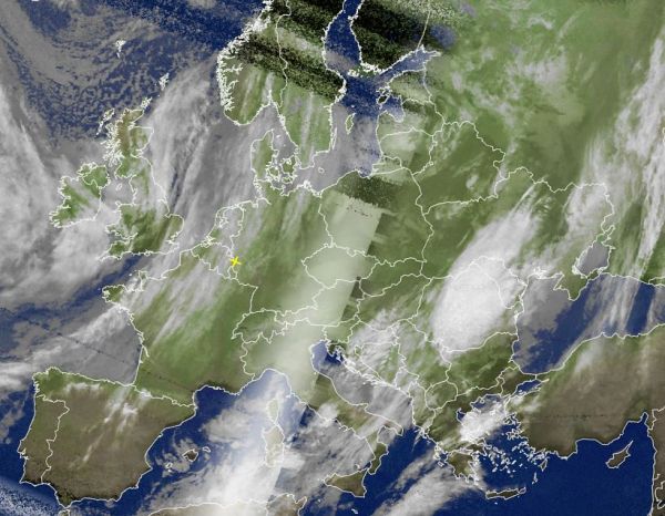Auf dem Satellitenfoto von heute Morgen sind die dichten Regenwolken des Sturmtiefs "Lauritz" mit Kern östlich von Island zu erkennen, dabei herrscht besonders über den Britischen Inseln, dem Norden und Westen von Frankreich, sowie Benelux und großem Teilen Skandinaviens sehr unbeständiges und nasskaltes Wetter.