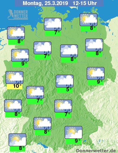 Die Temperaturen erreichen am Nachmittag Höchstwerte um 6 Grad C im Thüringer Wald und um 10 Grad C in der Kölner Bucht.