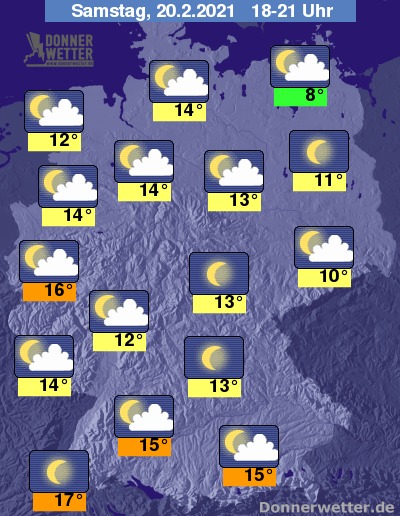 Heute Abend ist es verbreitet locker bewölkt oder sternenklar, dazu bleibt es trocken. Die Temperatur liegt anfangs noch bei 8 Grad in Rostock und bis 17 Grad in Freiburg.