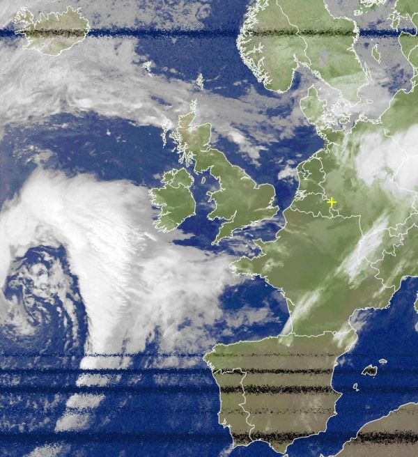 Auf dem Satellitenfoto ist über dem Atlantik das ausgeprägte Sturmtief "Noa" zu sehen, neben sehr kräftigen Regenfällen herrschen hier verbreitet orkanartige Böen. Besonders Irland wird die Auswirkungen des Sturmtiefs heute noch zu spüren bekommen. Es zieht im weiteren Verlauf langsam weiter in Richtung Nordosten.