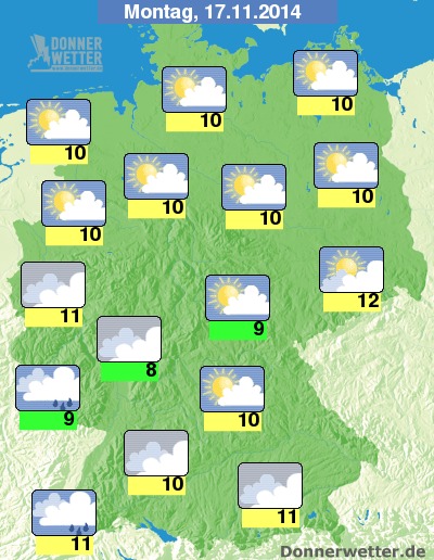 Heute, zum Start in die neue Woche, ziehen besonders im Süden und Südwesten Deutschlands häufig dichte Wolken durch, die jedoch nur vom Saarland bis rund um den Schwarzwald hier und da etwas Regen bringen, sonst bleibt es weitgehend trocken. Von der Mitte bis in den Norden des Landes ist es dagegen meist locker oder aufgelockert bewölkt und es bleibt trocken. Die Temperatur steigt auf etwa 8 Grad am Pfälzer Wald und bis 12 Grad in Leipzig.