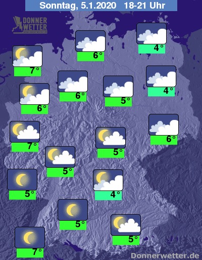 In der Nacht zum Montag zeigt sich der Himmel über der Nordhälfte Deutschlands verbreitet stark und nur hier und da auch mal aufgelockert bewölkt. Weiter nach Süden hin ist es meist sternenklar und sonst locker bewölkt, hier kann sich stellenweise Nebel bilden. Es bleibt landesweit trocken bei Tiefstwerten von 6 Grad in Wilhelmshaven und -3 Grad im Saargau.