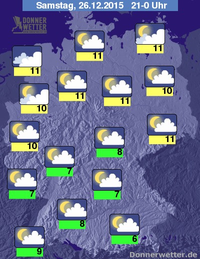 Heute Abend ziehen über den Norden der Republik häufig dichtere Wolken, teils lockert es aber auch auf, zudem bleibt es trocken. In den weiter südlich liegenden Landesteilen ist der Himmel verbreitet locker oder aufgelockert bewölkt und es bleibt ebenso trocken. Die Abendtemperatur liegt bei rund 11 Grad in Hamburg und etwa 6 Grad in München. Im Norden weht zum Teil starker, an der Nordsee auch stürmischer Wind, dabei sind Sturmböen möglich.