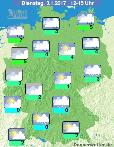 Heute Nachmittag ziehen überwiegend dichte Wolken übers Land hinweg, dabei fällt gebietsweise Regen, Schneeregen oder Schnee. Örtlich besteht Glättegefahr! Besonders im Süden scheint jedoch oft die Sonne bei hier meist lockeren Wolken. Die Temperatur steigt auf 0 Grad am Pfälzer Wald und bis auf 8 Grad im nördlichen Emsland.