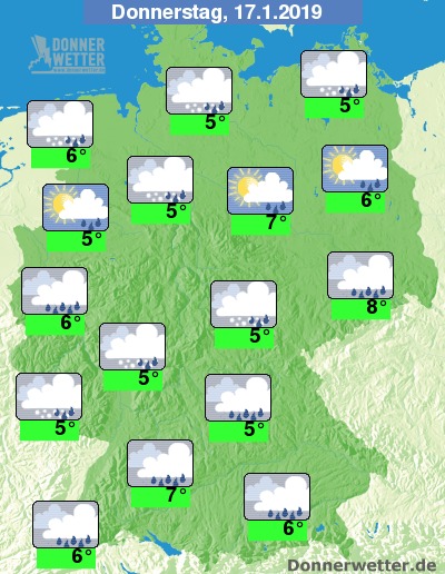 Die Höchsttemperaturen liegen zunächst noch allgemein zwischen 5 und 8 Grad, gehen aber im Tagesverlauf mit den Schauern zurück.
