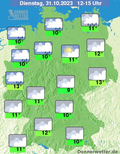 Heute Nachmittag zieht verbreitet starke oder dichte Bewölkung durch, dabei bilden sich einzelne Schauer oder es fällt zeitweise Regen. Die Temperatur liegt bei 9 Grad im Eichsfeld und etwa 13 Grad im Rheinland.