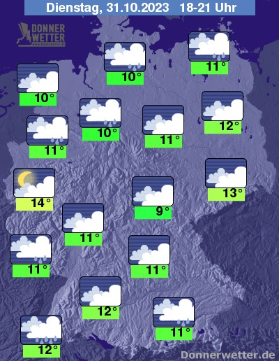 Heute Abend ist es weiterhin größtenteils stark bis dicht bewölkt und es bilden sich einzelne Schauer. Vor allem von der Landesmitte bis in den Osten bleibt es auch oft trocken. Die Temperatur liegt bei 9 Grad in Jena und 14 Grad in Köln.