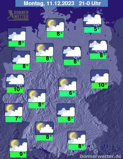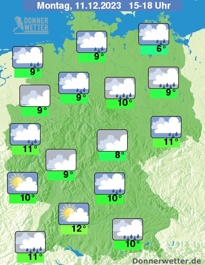 Am Nachmittag zeigt sich der Himmel meist stark bewölkt oder es ist bedeckt, dabei muss vor allem in der Nordhälfte immer wieder mit Schauern gerechnet werden. Im Süden fällt bei starkem Tauwetter am Nachmittag teils anhaltender und ergiebiger Regen. In der Landesmitte sowie im Westen und Südwesten bleibt es häufig trocken.
