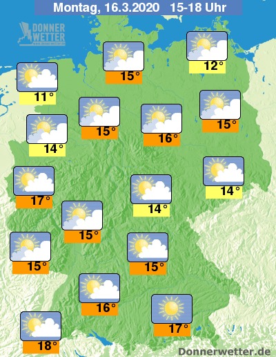 Die Temperaturen liegen meist zwischen 14 und 19 Grad, etwas kühler bleibt es im Küstenumfeld von Nord- und Ostsee, sowie über Schleswig-Holstein.