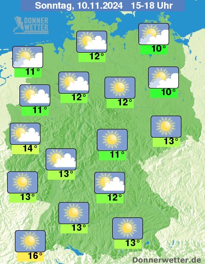 Am Sonntagnachmittag scheint über dem Süden und Südosten verbreitet die Sonne; in den übrigen Landesteilen ist es teils heiter, teils hochnebelartig bewölkt. Im Nordwesten kann gebietsweise etwas Sprühregen fallen, sonst bleibt es meist trocken.