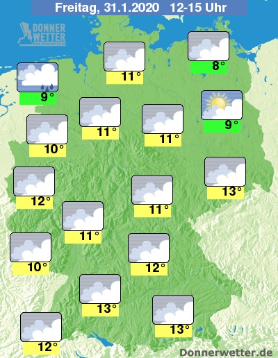 Bis zum frühen Abend fällt an den Küsten von Nord- und Ostsee, sowie über Schleswig-Holstein zeitweise Regen. Im übrigen Land bleibt es abgesehen von etwas Sprühregen trocken. Wolkenauflockerungen treten jedoch nur selten auf.