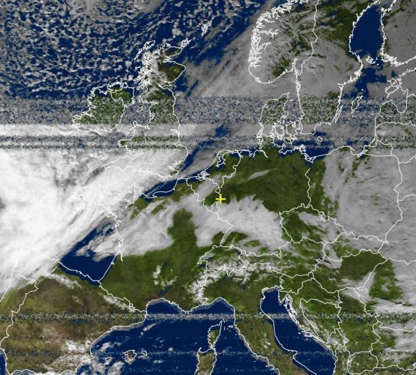 Die Satellitenaufnahme von heute Nachmittag zeigt Europa größtenteils heiter oder gar sonnig. Trotz des Hochdruckeinflusses, der sich von West- über Mittel- bis nach Osteuropa hinein erstreckt, bleibt es in einigen Regionen den Tag über trüb oder neblig. Während sich bspw. die Nordhälfte der Bundesrepublik über meist sonniges Wetter freuen kann, hält sich der Nebel und Hochnebel im Süden des Landes oft den ganzen Tag.