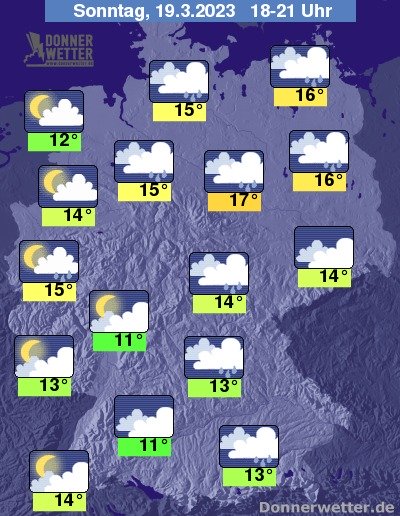 Heute Abend ziehen besonders über den Norden und Osten, aber auch im übrigen Land dichte Wolken hinweg. Im Nordwesten und Südwesten bilden sich selten, sonst vielerorts Schauer. Im Norden und Osten sind auch einzelne Gewitter möglich. Die Temperatur liegt bei 11 Grad in Stuttgart und bis 17 Grad in Magdeburg.