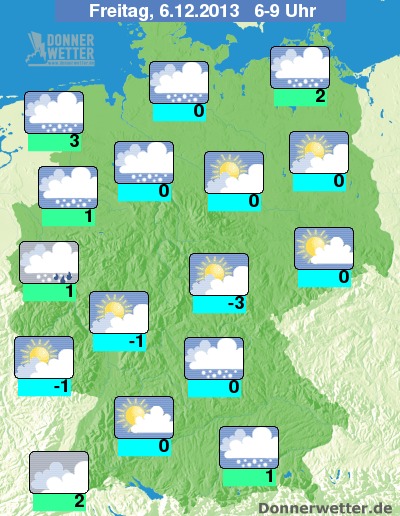 In der Nacht geht in weiten Teilen der Regen in Schneeregen und Schnee über, die Temperaturen sinken auf Werte um den Gefrierpunkt ab. Vor allem im Süden und Osten kann es am Freitag Morgen auf den Straßen Behinderungen durch Schnee geben. Der starke Wind kann für Schneeverwehungen sorgen, so dass die Winterdienste es schwerer haben, die Straßen frei zu halten.