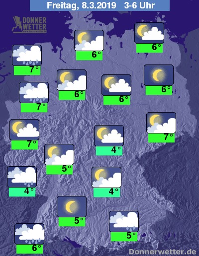 Bis Mitternacht klart der Himmel dann verbreitet auf, nur in Ostfriesland, sowie im südöstlichen Bayern halten sich noch einige Regenwolken.