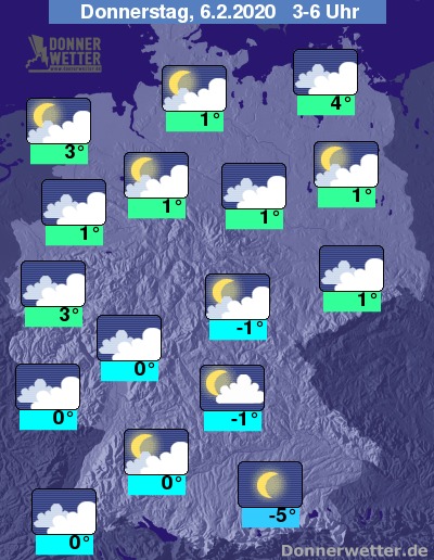 Bis zu den Frühstunden kühlt die Luft in der Nordhälfte auf 0 bis 4 Grad ab, in der Südhälfte gibt es teilweise Frost mit Werten knapp unterhalb des Gefrierpunktes. Südlich der Donau wird es noch kälter.