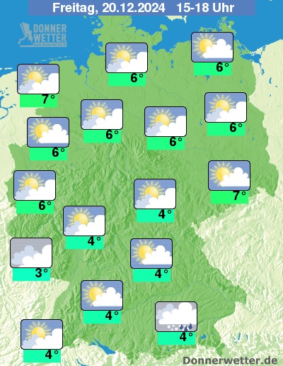 Die Temperaturen gehen zurück auf Werte um 6 Grad am Niederrhein und -2 Grad am Alpenrand.