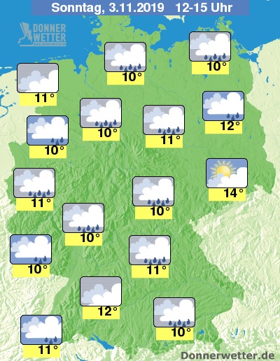 Heute Nachmittag ist es zunächst verbreitet stark bewölkt und es fällt vielerorts auch Regen. In den westlichen Landesteilen lockert die Bewölkung im weiteren Verlauf oft auf und es bleibt vorübergehend trocken. Die Temperatur liegt bei 10 Grad in Hamburg und bis 14 Grad in Dresden.
