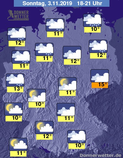Heute Abend ist es vom Saarland bis nach Thüringen oft nur leicht bis aufgelockert bewölkt und dazu trocken. Im übrigen Bundesgebiet halten sich zumeist dichte Wolken, dazu fällt im Norden, Nordwesten, Westen und Südosten gebietsweise Regen, sonst bleibt es weitgehend trocken. Die Temperatur liegt bei 10 Grad in Dillingen und etwa 15 Grad in Dresden.